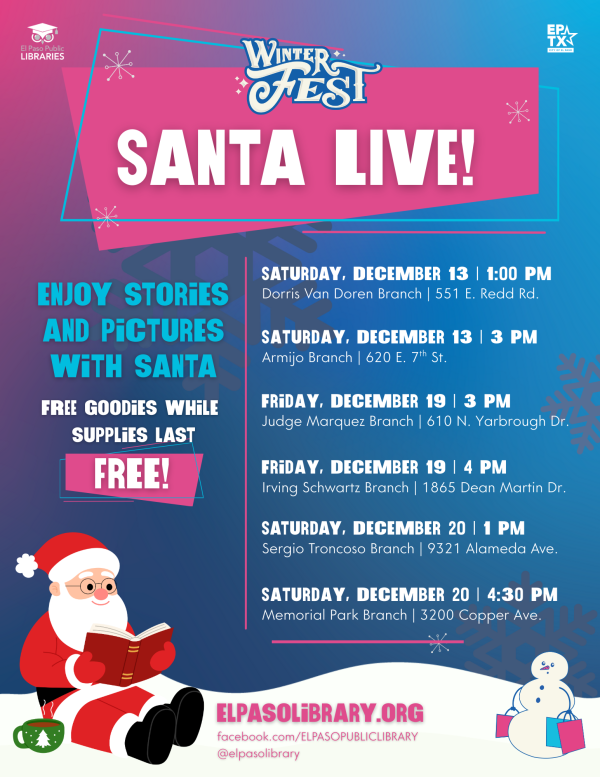 The El Paso Public Library is hosting hundreds of free holiday programs the whole family will enjoy this holiday season. Click on the file below to download the list or check back as we add more.