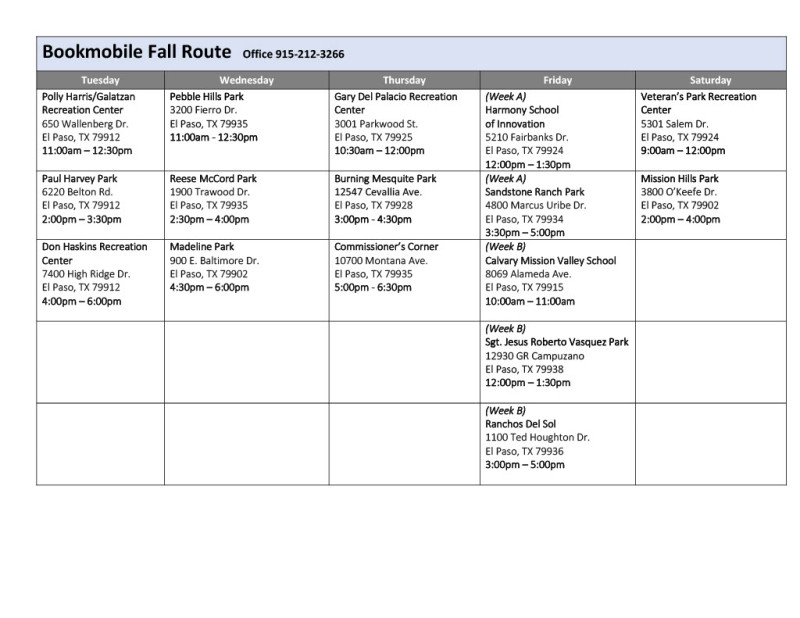 Bookmobile Schedule
